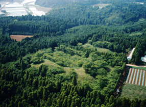殿塚古墳 ……【所在】横芝町中台字外記 【長さ】88m 【高さ】10m 【墳形】前方後円墳 【主体部】横穴式石室 【副葬品】頭椎大刀1,直刀5、刀子1、銅腕3、金銅鈴8、金銅耳環3、ガラス玉、勾玉。